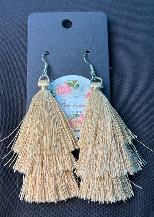 3 Tier Chandelier Tassel Earrings - Natural Shimmer