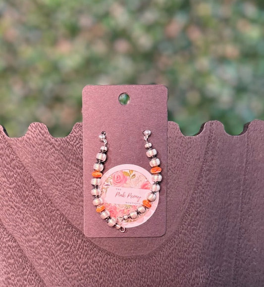 11 Bead Navajo Pearl Earrings with Orange Stones; 2 1/2"- Authentic