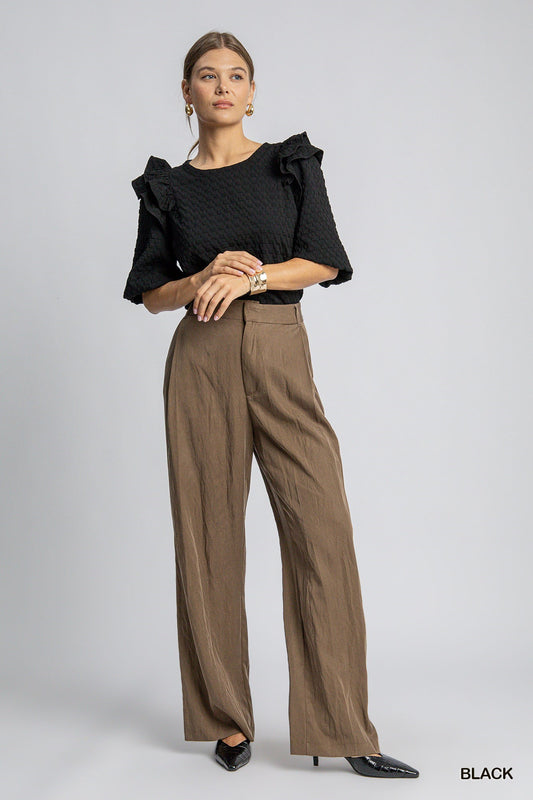 3/4 Sleeve Round Neck Textured Top with Ruffle Sleeves - UMGEE