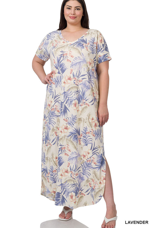 Beachy Floral Print V-Neck Short Sleeve Maxi Dress - BLOWOUT SPECIAL
